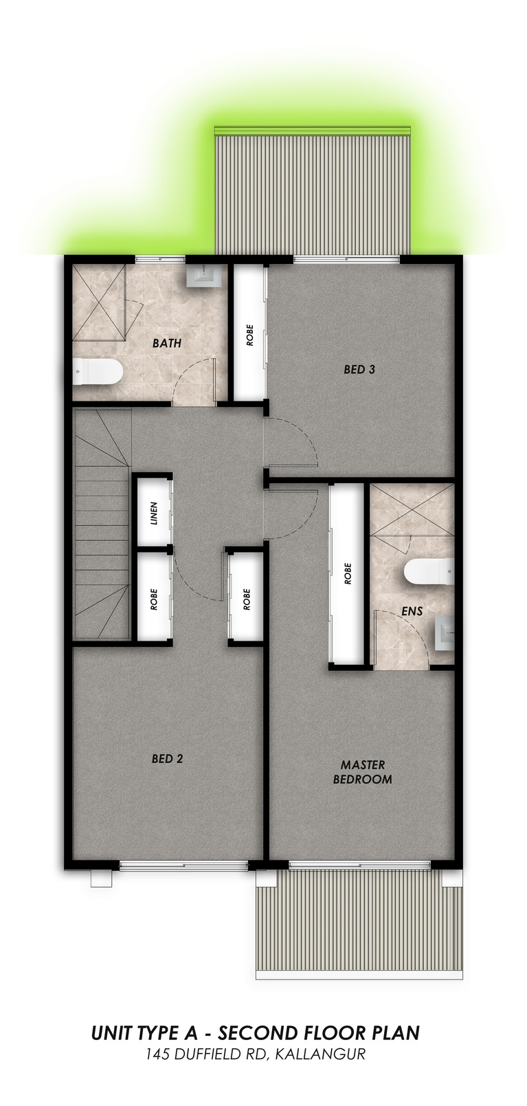 The 26 x 3 Bedroom, 2 Bathroom, 2 Car spaces Kallangur Townhouses are available for rent in 2 configurations. Both are the same floor area, but different configurations.